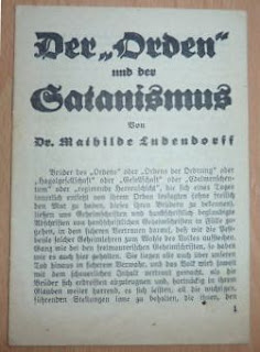Wer mit Erschütterung sich in diese Thematik eingearbeitet hat (wie hier auf dem Blog seit Januar 2011 geschehen)(bzw., was die Jesuiten betrifft: seit Frühjahr 2010), der erinnert sich vielleicht daran, daß vor der Gefahr von Okkultismus und Jesuitismus in den herrschenden Eliten auch schon einmal in früheren Jahrzehnten gewarnt worden ist. Nämlich vom dem Ehepaar Erich und Mathilde Ludendorff und ihren Mitarbeitern seit 1927. Bis dato ist einem kein zweites Buch bekannt geworden, daß die Wirklichkeit von elitärem Satanismus (und auch elitärem Jesuitismus) in seiner Entstehung so gut zu erklären und zu erläutern weiß wie das Buch von Mathilde Ludendorff "Induziertes Irresein durch Okkultlehren". Aus dieser Feststellung ergaben sich die weiteren Bemühungen um Bestandsaufnahme des Anfang der 1930er Jahre schon vorhandenen Wissens oder der Anfang der 1930er Jahre schon vorhandenen "Vermutungen" und "Ahnungen".